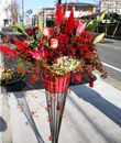 数種の赤い花に実物を絡めて、秋の装いも演出してみました。